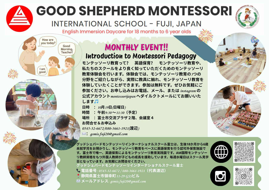 9月に行ったモンテッソーリ体験会を10月も実施することとなりました。